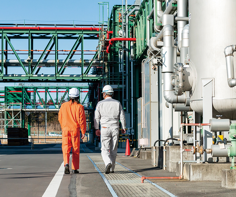 - 社会を支える製品を作る現場で働きたいと思い、志望しました。大きな設備をチ−ムで動かし安全第一で安定操業を守る製造オペレ−タ−に魅力を感じました。